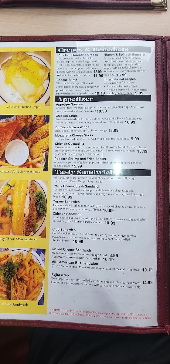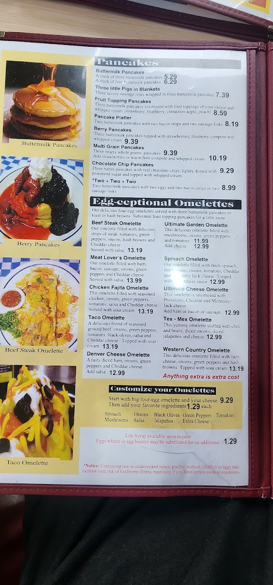 Welcome to the Family Pancake House, a charming eatery nestled in Dallas, Texas, that specializes in hearty breakfast and lunch options. The menu boasts a delightful array of pancakes, with highlights such as the Berry Pancakes, featuring three fluffy buttermilk pancakes adorned with strawberries, blueberry compote, and whipped cream, perfect for sweet indulgence at just $10.99.
