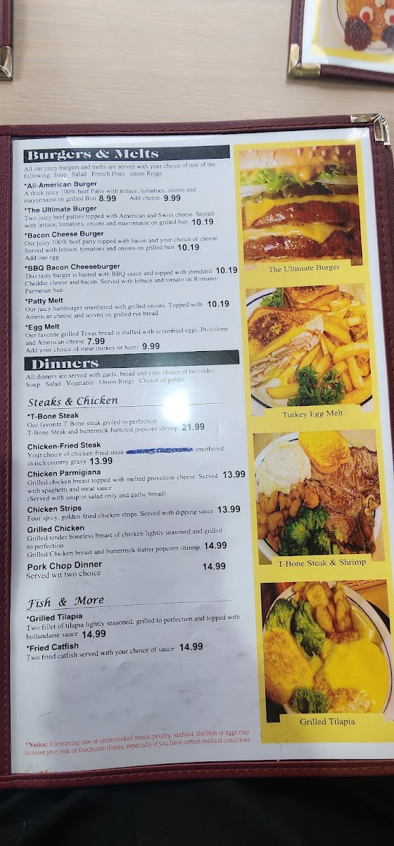 For those seeking a savory start to the day, the T-Bone Steak & Eggs is a must-try, serving tender steak accompanied by two eggs, hashbrowns, and buttermilk pancakes for $21.99. Customers rave about the attentive service and welcoming atmosphere, making it an ideal spot for families and friends alike.
